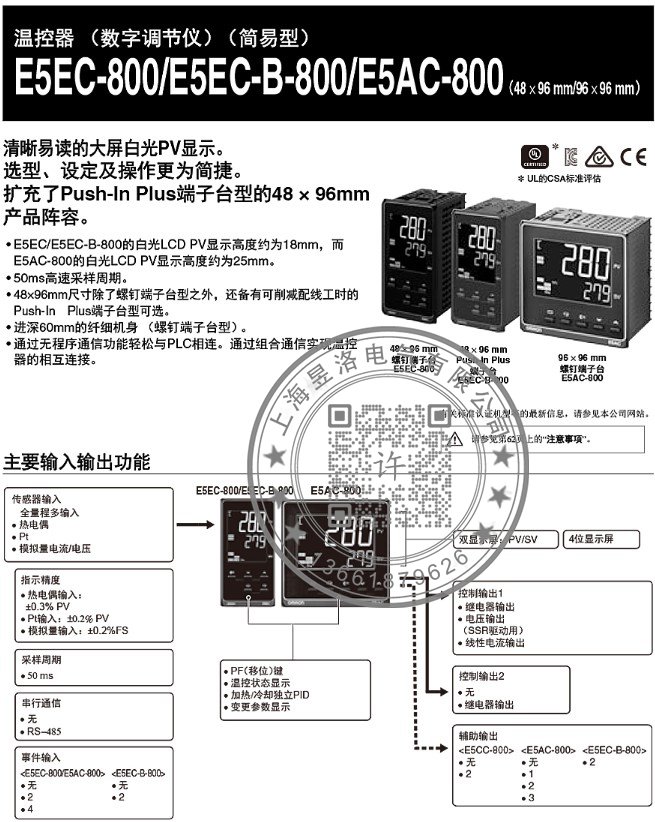 OMRON/欧姆龙 E5EC-800简易型温控器(48×96mm) E5EC-CR2ASM-804
